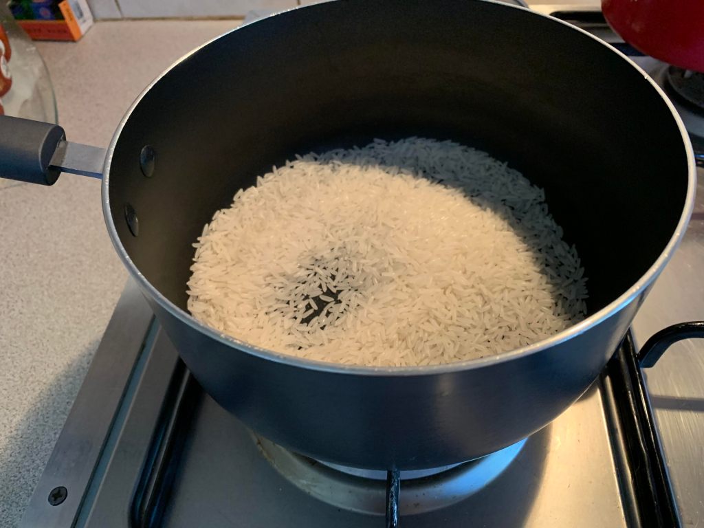 Step 2: Add rice to a pot of your choosing, I used a small to medium one but a larger one can be easier for beginners.