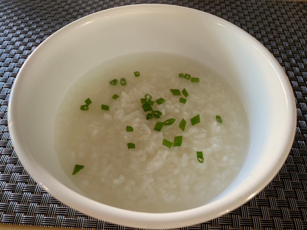 Step 6: Serve the congee! As mentioned there are endless possibilities for ingredients but the image is how I prefer my congee – the greens of the spring onion. Flavor will be bland (that is the purpose and part of the therapeutic benefit) so feel free to add some soy sauce and also some white pepper if you enjoy a bit of a kick.